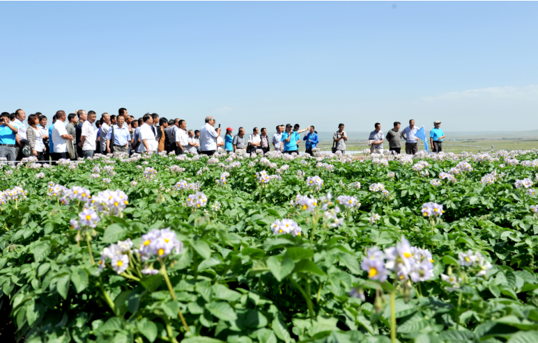 馬鈴薯專(zhuān)家和種植大戶(hù)在研究院試驗(yàn)田參觀